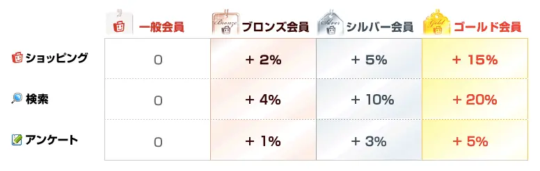 ランクアップにはお買い物回数が重要になるので、少額ずつでもネットショッピングの回数が多い人はおトクになるでしょう。