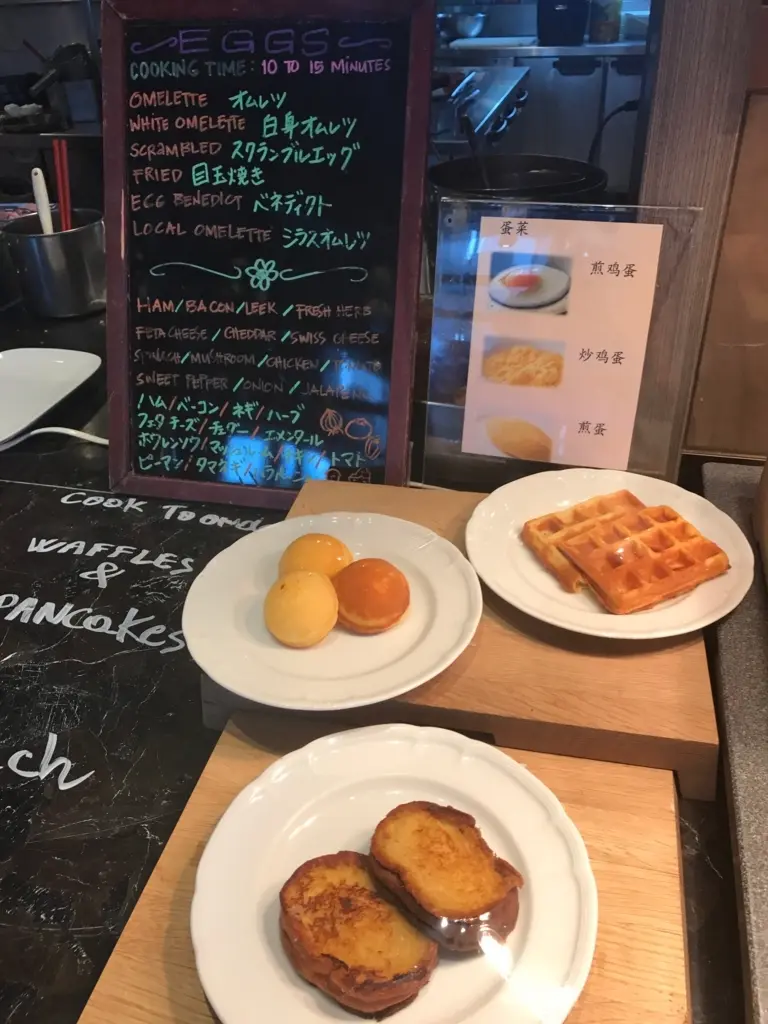 デザートにワッフルも注文しましたが、見本と違って、あまりに美味しそうな出来だったので、写真撮るの忘れて食べてしましました。