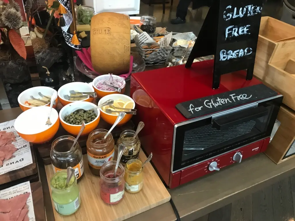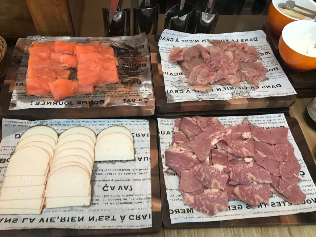 種類が豊富で、色んなものが自分で作れるので、かなり楽しい朝食です。